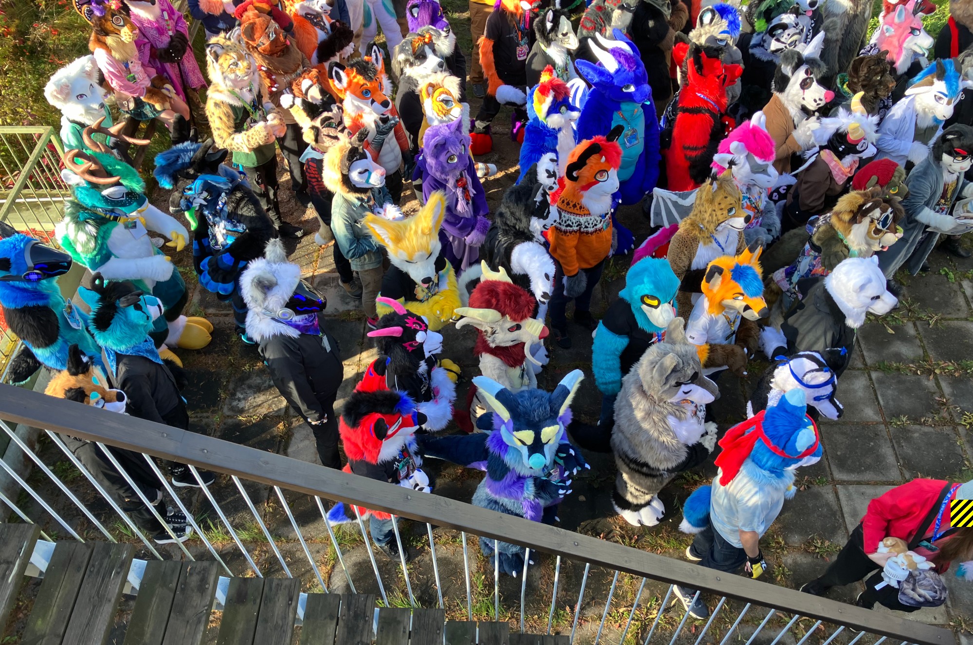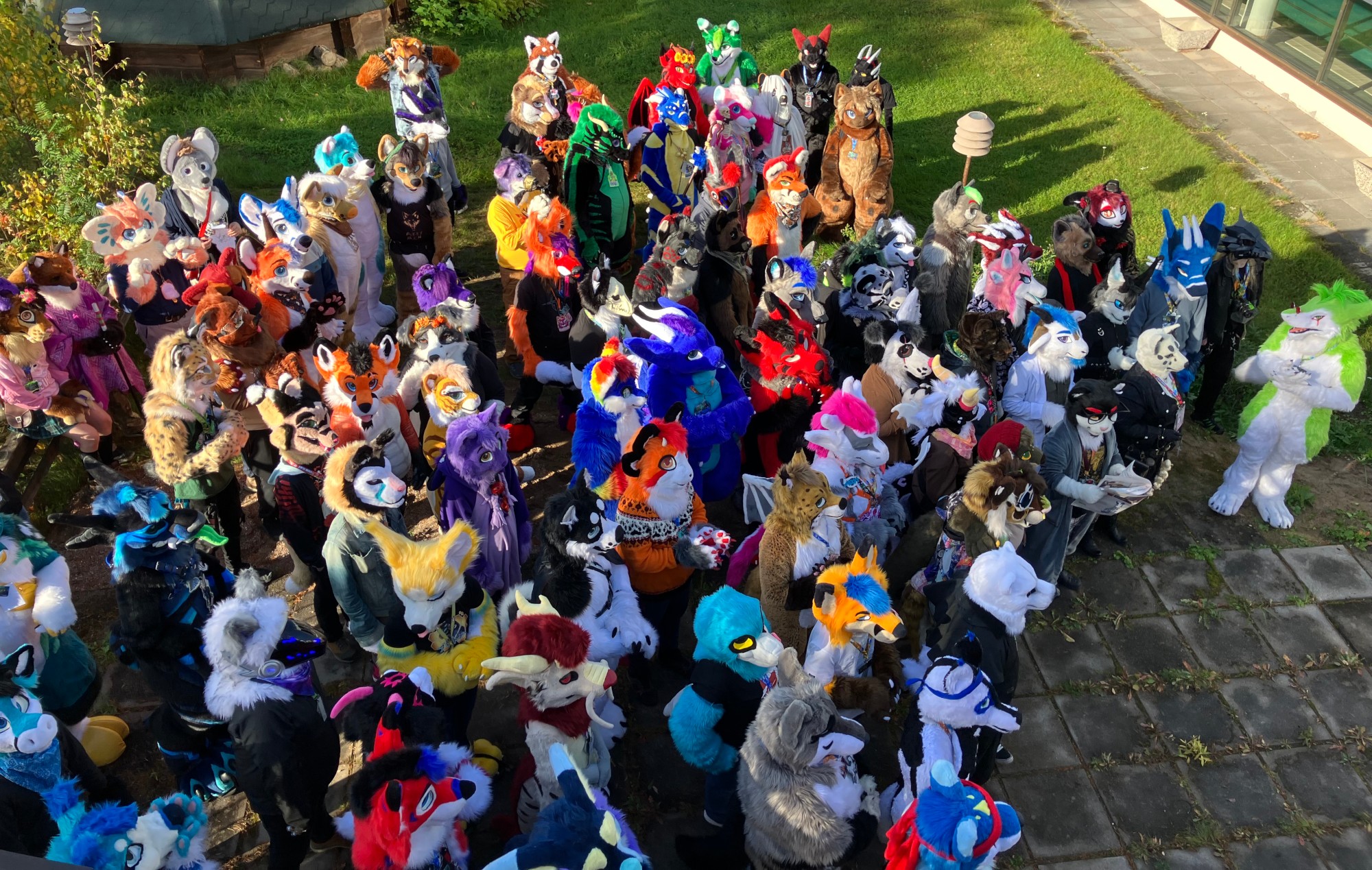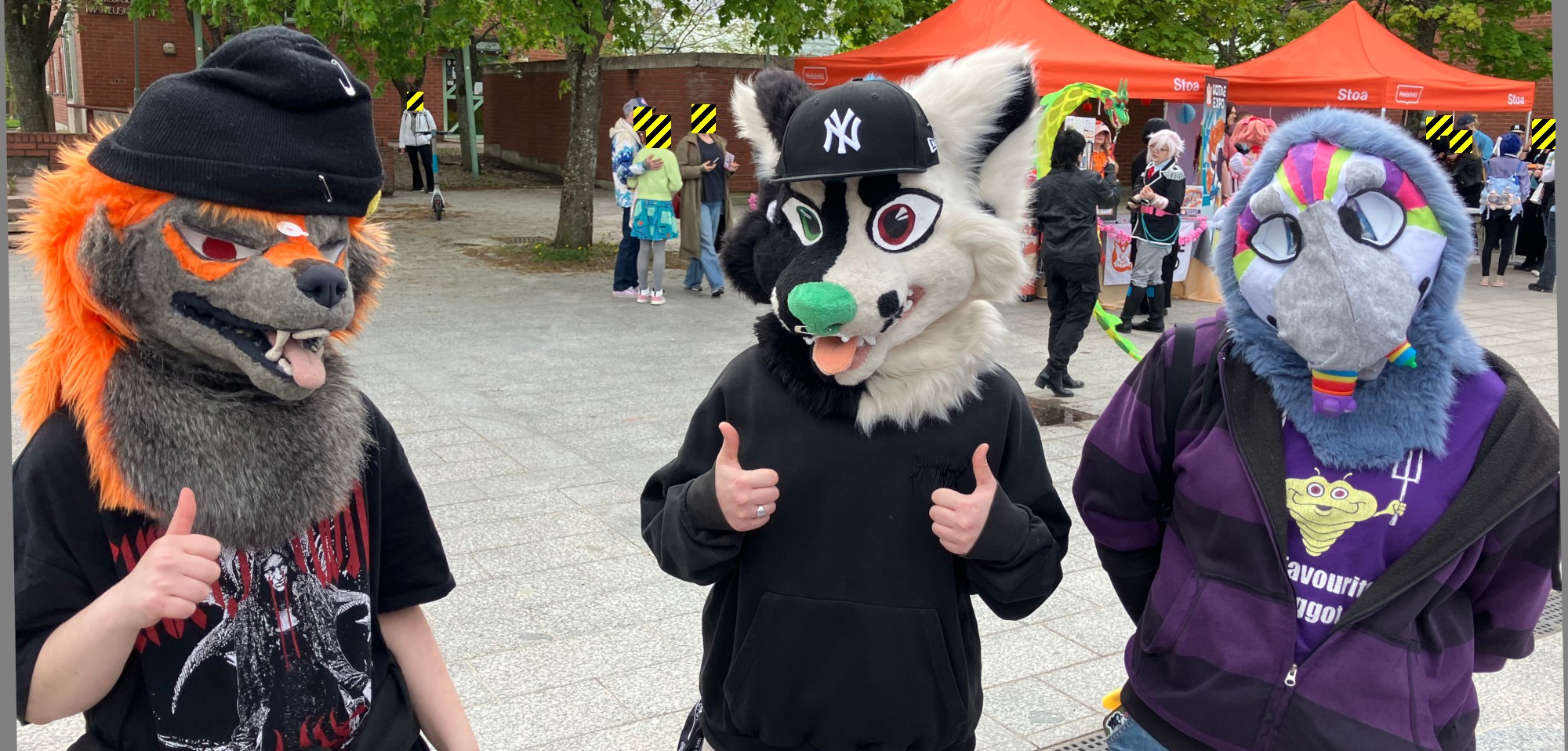 Huomaathan, että hevoset saattavat pelästyä näyttäviä fursuit-asuja! Ratsastuskentällä on esteratsastuskilpailut käynnissä. Ethän liiku Fursuit-asussa lähelle ratsastuskenttää tai hevosia. Hevoset voivat säikähtää ja aiheuttaa vaaratilanteita. Kiitos!