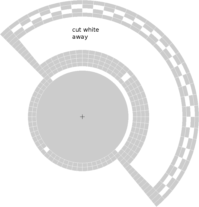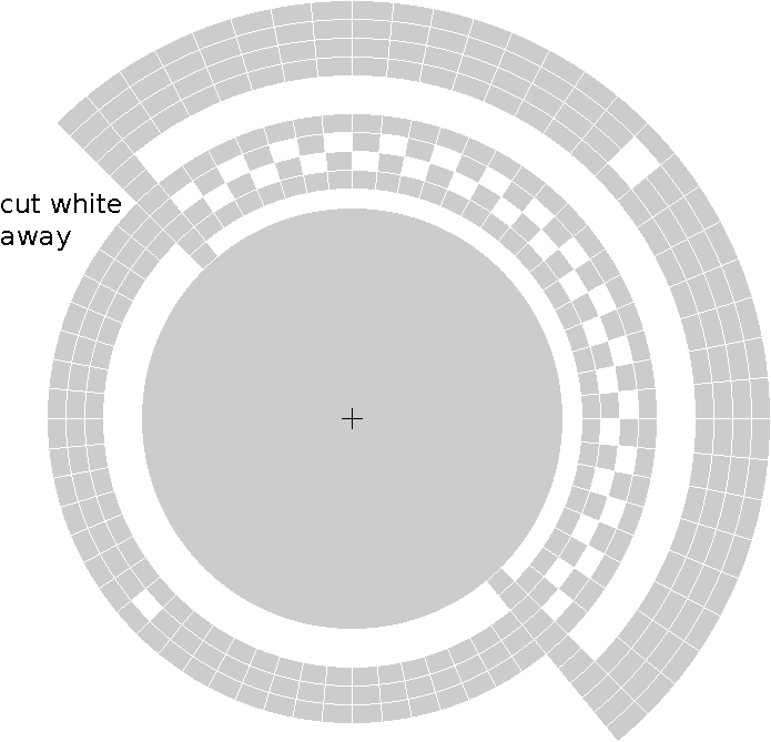 - The checkerboard patterns on the mask discs were too weak. I should have left unused space between the inner and outer halves of each pattern.